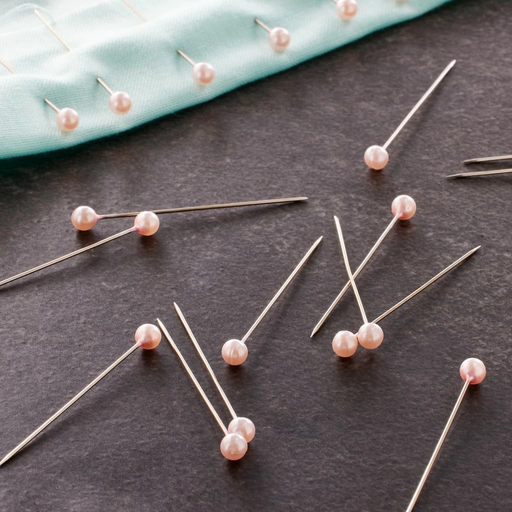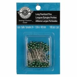 Easy to see and handle, you are sure to find many uses for these handy pearlized pins. These sturdy nickel-plated steel pins featuring colorful pearl heads can pierce through your fabric without bending. Use these size 24 pins for marking or holding fabrics together for sewing.