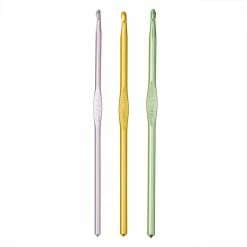 These crochet hooks feature optimally smooth throats and rounded heads for the most precise, professional-looking work. Three colorful aluminum crochet hooks measuring six inches in length are included in this set. The set includes the popular hook sizes of G,H and I.