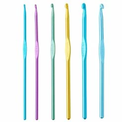 Loops & Threads crochet hooks feature optimally smooth throats and rounded heads for the most precise, professional-looking work. Six colorful aluminum crochet hooks measuring 6″ in length are included in this set.