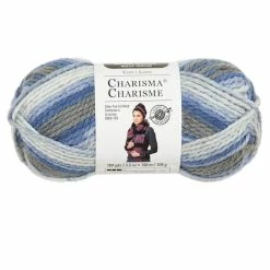 Indulge your creativity with these delicious textures and colors of yarn! Ideal for afghans, scarves, cowls and hats, Charisma is a wonderfully soft, bulky weight yarn in a variety of modern solids and sophisticated prints. This 100% acrylic yarn is easy to use and works up quickly.