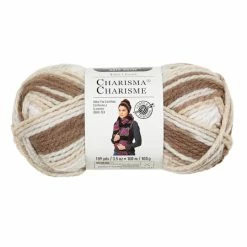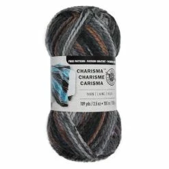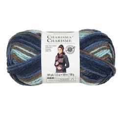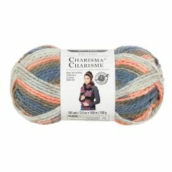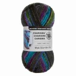 Indulge your creativity with these delicious textures and colors of yarn! Ideal for afghans, scarves, cowls and hats, Charisma is a wonderfully soft, bulky weight yarn in a variety of modern solids and sophisticated prints. This 100% acrylic yarn is easy to use and works up quickly.