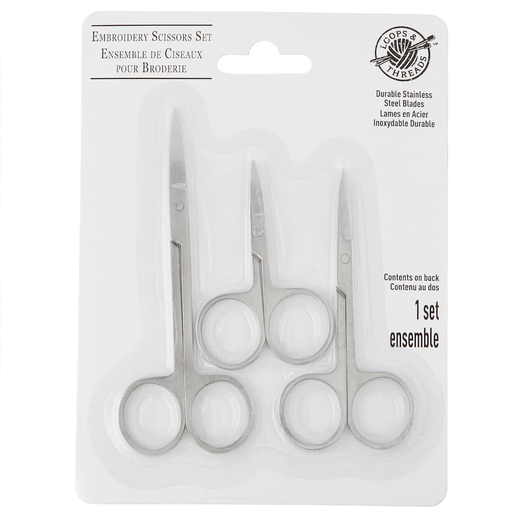 Creativity is in your hands—along with a great pair of scissors. This assortment pack includes three scissors in assorted sizes that are perfect for general embroidery use. These scissors feature a durable stainless steel blade for long lasting sharpness.