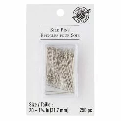 Specially designed for use with fine, delicate fabrics. These nickel-plated steel pins feature a fine shaft ideal for quilting and for use on thinner fabrics.