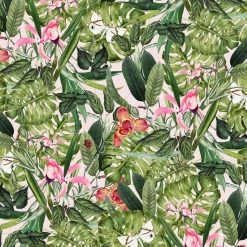 This cotton fabric with a beautiful palm print is great for your home décor projects. You can team it with other brightly colored fabric to make wreaths, buntings or table runners.